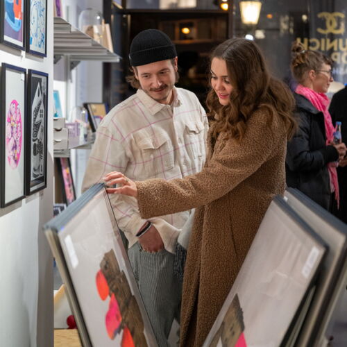 Open Window Art – ein Kunstspaziergang durch die Münchner Innenstadt. Nach den guten Erfahrungen des letzten Jahres blieb die MUNICH POP ART auch im Herbst 2021 wieder an der frischen Luft. Künstlerische Arbeiten luden in zentraler Lage rund um die Uhr zu einem inspirierenden Spaziergang ein. Zwischen Leerstand und Konsumgütern galt es mit Hilfe einer Karte vom 10. bis 27. November 2021 die bespielten Schaufenster, Vitrinen und Läden aufzuspüren, um Pop Art neu zu entdecken. Orte: Rathausladen 13, Artothek, #kreativmuenchen Schaufenster