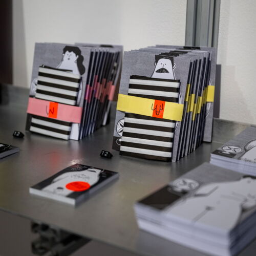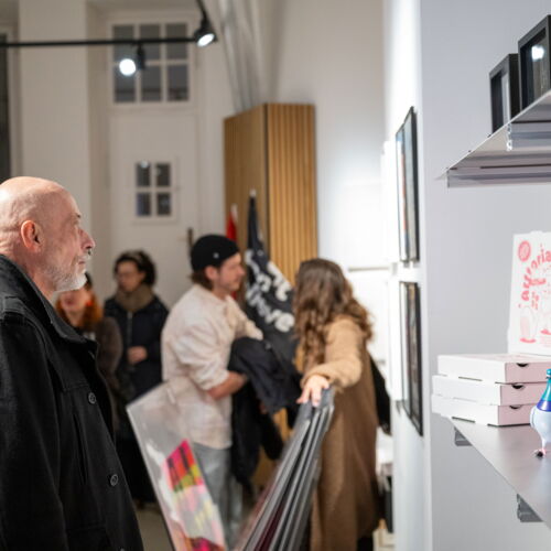 Zudem erschien eine limitierte Risographie-Edition. Diese außergewöhnlichen Kunstwerke waren für die Dauer der Ausstellung in den Schaufenstern des alten Café Pavesi und der Münchner Buchmacher präsentiert.