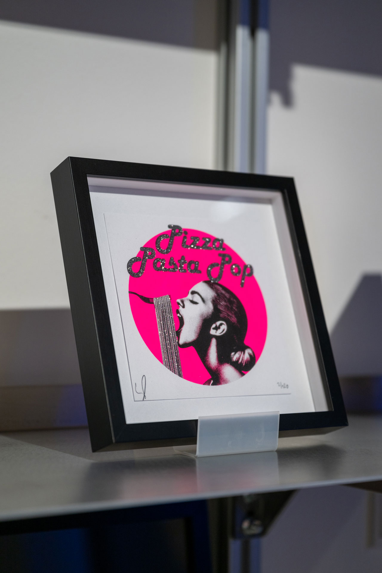 Im Spätherbst 2024 verwandelte Munich Pop Art die Designagentur Studio C_ im Kunstareal München für ein verlängertes Wochenende in eine „Arttoria“ um: ein vermeintlicher Pizzashop, der sich als Kunstausstellung entpuppt; mit Kunstwerken, die allesamt die italienische Küche thematisieren.
